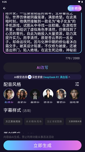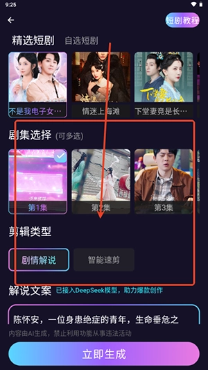1借助AI技术,能够迅速产出高品质的短剧解说文案,为短剧推广人员给予高效的内容创作助力。