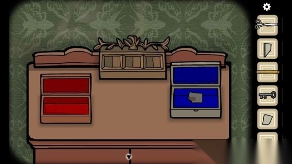 左边的盒子里是金色钥匙,右边的类似华容道游戏,把上面可滑动的图案和下面的对应上就行。