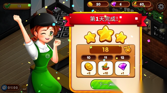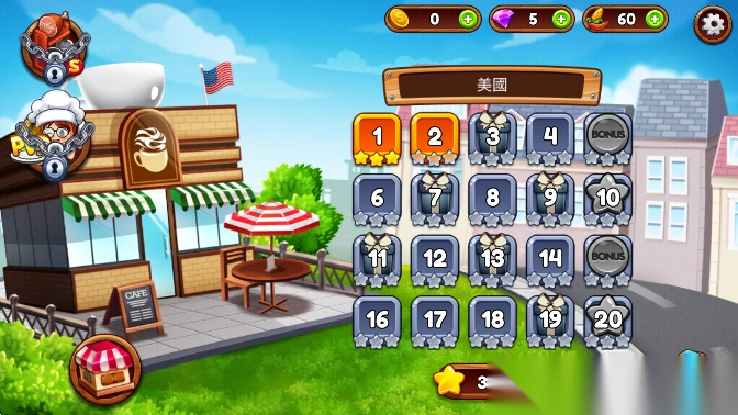 首先进入游戏选择你要管理经营的店面开始,每个不同主题下的餐厅经营过程中都有各自独特的关卡在等待着你,通过选择挑战挑战关卡后,便可开始正式体验该游戏有趣的玩法内容。