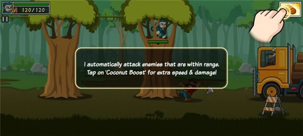 《森林防御战猴子传奇》(Lumberwhack)是一款趣味十足的策略塔防类游戏。在游戏里,玩家得组建一支动物防御队伍,以此抵御人类伐木工的攻击。游戏中可选用猴子、狮子、老虎、水牛等多种角色,针对不同关卡进行策略组合。每一关都是全新的挑战,越往后难度越大。游戏采用卡通画风,玩起来既休闲又有趣!