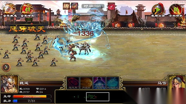 风牙破天:也是一项飓风技能,但和一技能的飓风术差距甚大!是一个直接攻击敌将的技能!用过姜维的人都知道,直接攻击敌将的技能有多好用!在一名武将身上出现更难能可贵,武将有更高的血量和攻击,就算蓝用完了还能冲锋杀敌。