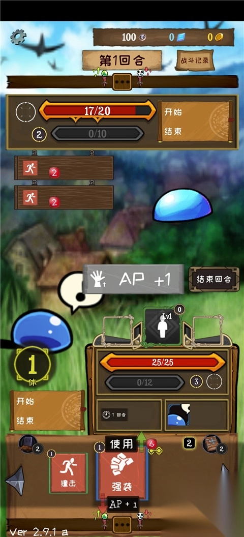 4、这是属性面板,有血条、ap技能、防御属性,使用各种技能攻击敌人,血量先耗尽的玩家就算失败
