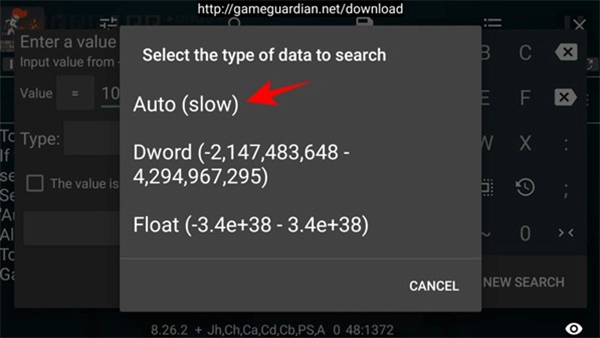 4、也可以选择Auto然后自行搜寻游戏内可以修改的参数