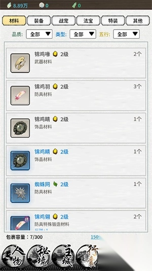 4、玩家获取的资源会存放在背包中,在此玩家能够查看每种资源的使用方式。