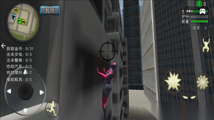 1. 通过滑动屏幕发射绳索,于楼宇之间实现摆荡或攀爬动作,从而迅速抵达任务地点。