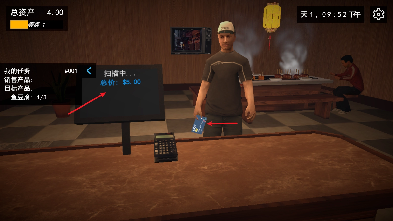 8、用晚餐之后就会进行结账,点击客人吃的食物就会扫描出价格。