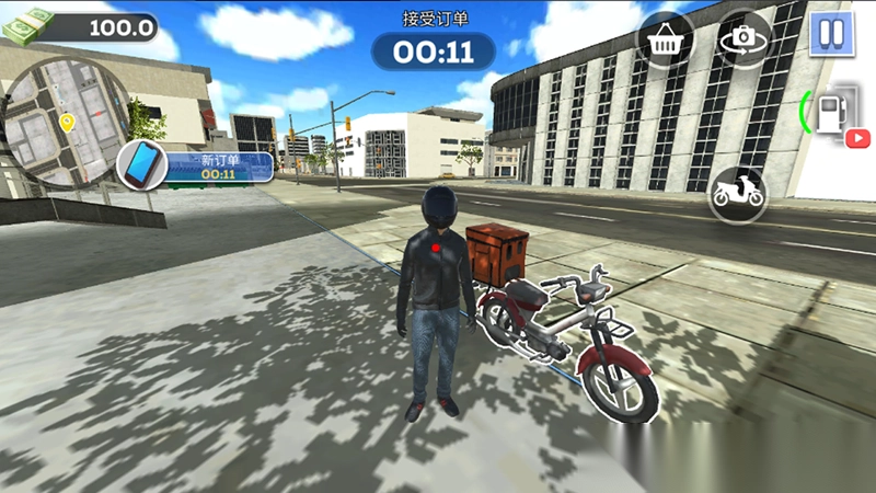 2、定制自己的外卖员角色,随着游戏进程推进,能解锁更多服装、车辆或其他职业技能,打造独特的外卖员形象。