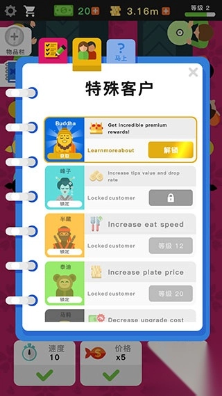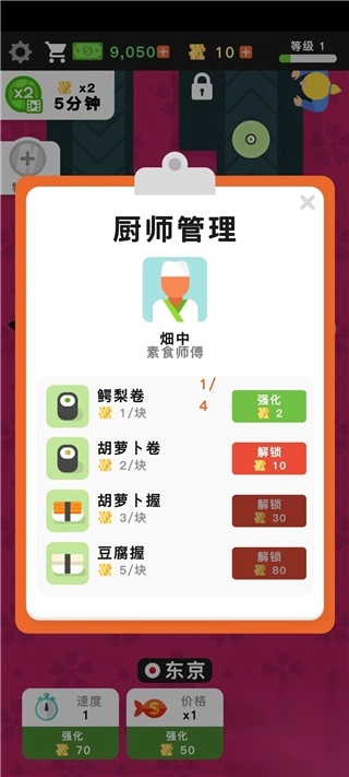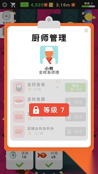 6、随着寿司店不断地升级,你还可以解锁更多厨师。