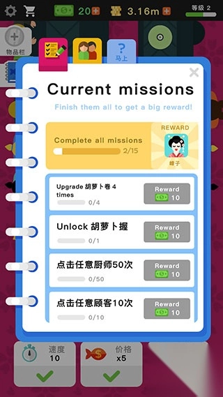 2. 轻点左侧的小本子,即可打开任务列表。当您完成任务后,就能在此处领取奖励。