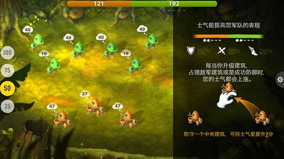 绿色、橙色、红色等蘑菇种族,分别代表多方不同势力。灰色蘑菇种族属于保守方,虽不会主动发起进攻,但会进行防守。在此过程中,务必留意出兵占领数量。若显示数量为15个,那就意味着攻击方需达到15个数量,若未达到,防守方将进行自我防御,从而导致占领失败。