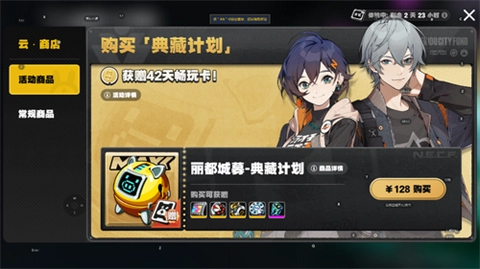 4、在游戏内购物典藏计划就可以免费畅玩云绝区零42天。