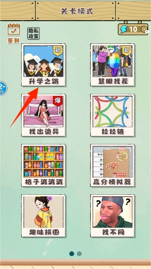 2、在特色玩法区域,选择标注"升学之路"的升学主题模式。