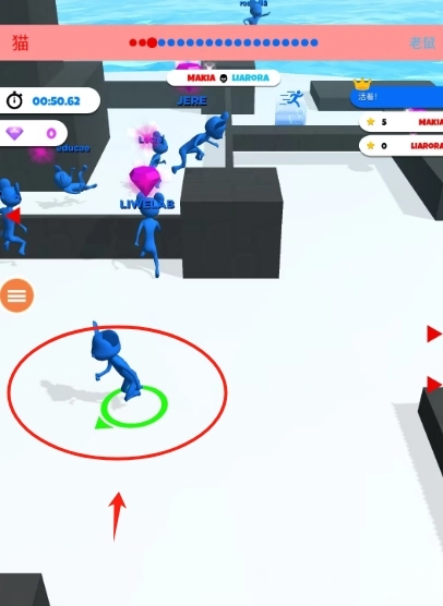 2、道具互动玩法:在场景里会随机刷出各类趣味道具,像老鼠能用的隐身药水、猫咪可用的加速靴等,给游戏带来更多变数与乐趣。
