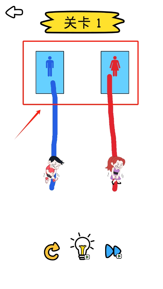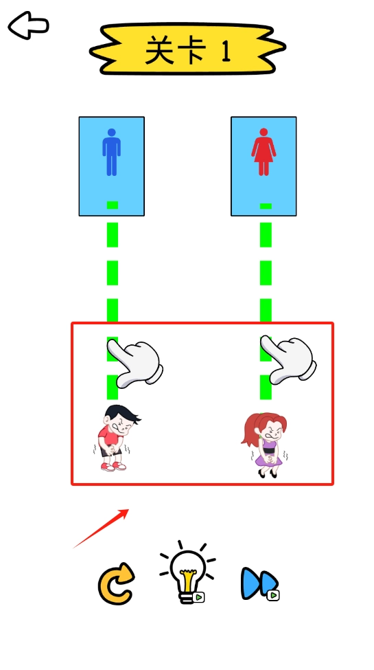 3、看男女卫生间标志选对应小孩操作,用撤销、提示、重置图标帮忙。