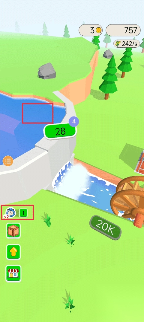 3、偶尔也得留意水库里不时漂浮在水面上的盒子,其中会有辅助道具,能缩短水力发电机的运行时间。