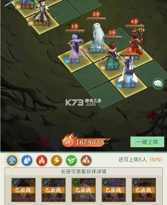 布阵如图:① 夕瑶 ② 剑圣 ③ 云天河 ④ 温慧 ⑤ 沈欺霜