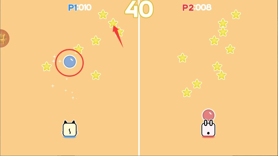 3、调整角度将球反弹至带有星星标志的砖块,成功击碎即可获得积分,完成基础得分教学。