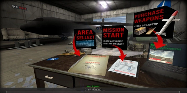 3、在此处,你将驾驭战机,飞临荒芜的天际,随后投放核弹。