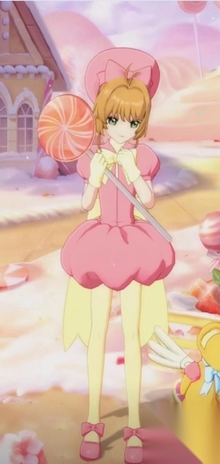 (2)《粉色芙蕾》这套超级可爱的战斗服,是小樱在对战“斗牌”时的战斗服,有着精致的蝴蝶结和粉色软帽,还有腰间的大蝴蝶结,蓬起来的袖子和独特的裙摆设计,粉色和奶白色这样的配色让整体感觉更加可爱。