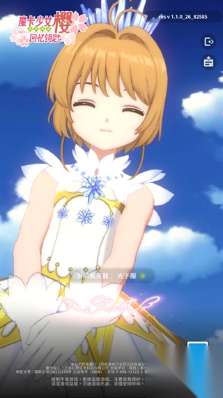 1、打开魔卡少女樱回忆钥匙手游,选择服务器后点击【start】开始游戏。