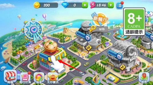 1、首先我们在地图上点击一下地图餐厅进入游戏界面