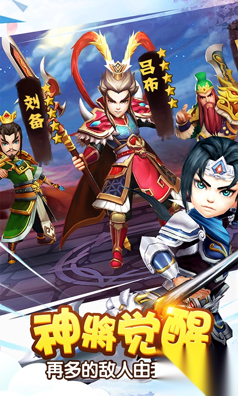 完美还原三国历史,你喜欢的三国名将,忠心追随,任你调遣!游戏拥有完善的武将收集与培养系统——武将升级、武将升星、武将进阶、武将情缘等!每位武将都有鲜明的特点,不同的基础属性、专属的技能,需要主公不断研究调整阵容搭配,才能在精彩的关卡中最大限度的发挥出每位武将的优势!