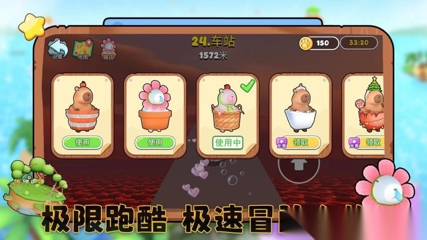 1、疾速冲刺体验将操控卡皮巴拉在多样场景中飞速穿梭,玩家通过灵活操作获取关键道具,感受风驰电掣的畅快感。