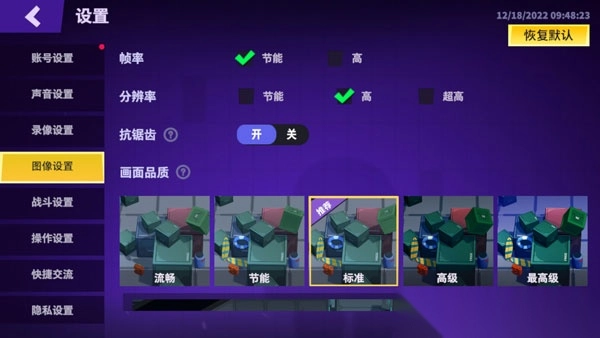 2、在正式开始游戏前,可以点击界面右上角的设置按钮,调整游戏画质、音效、操作方式等。