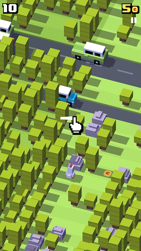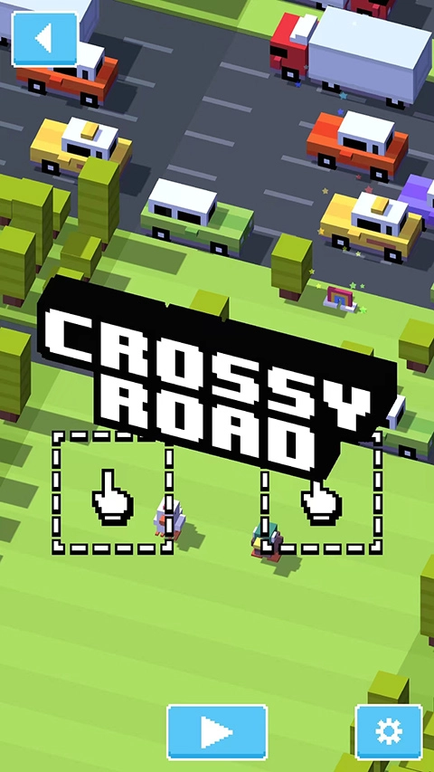 1、游戏为无尽模式,并没有关卡这类的设计,玩家们要帮助主人公横穿马路,并且躲避来回的车辆,手指上下左右滑动屏幕可以控制人物的移动。游戏中玩家们所得到的分数根据人物的行动步数而定,但是只有向前前进一步才会增加一份,左右移动并不会增加分数,当然往回退也不会减少分数。