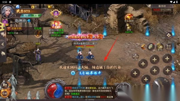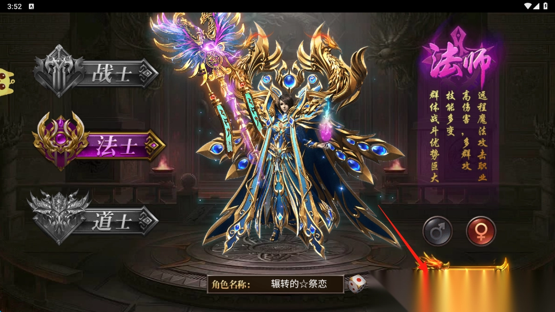 1. 选择法师职业,设定角色名称,点击进入,开启玛法大陆的冒险征程。