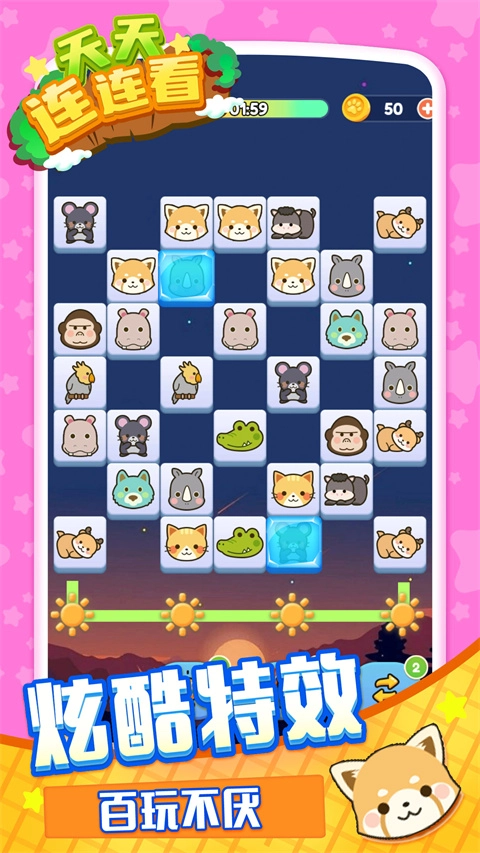 3、萌趣主题:将经典玩法与可爱动物元素完美结合,带来不一样的连连看体验。