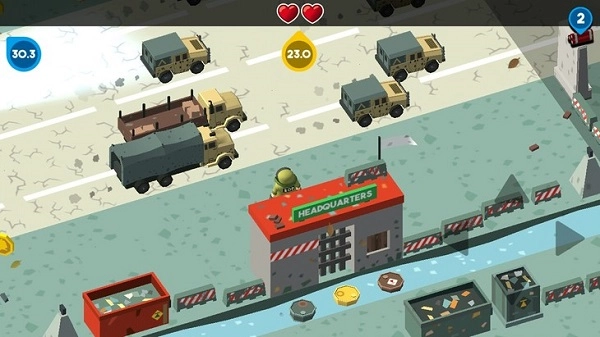 在我们前进时,会遇到马路,马路上一直又车辆在经过,我们在前进时一定要注意躲避车辆,被撞到一次就会扣除一点生命值,过马路时一定要快,瞅准时机就果断跑起来,稍微一犹豫就有可能又是一大波车。