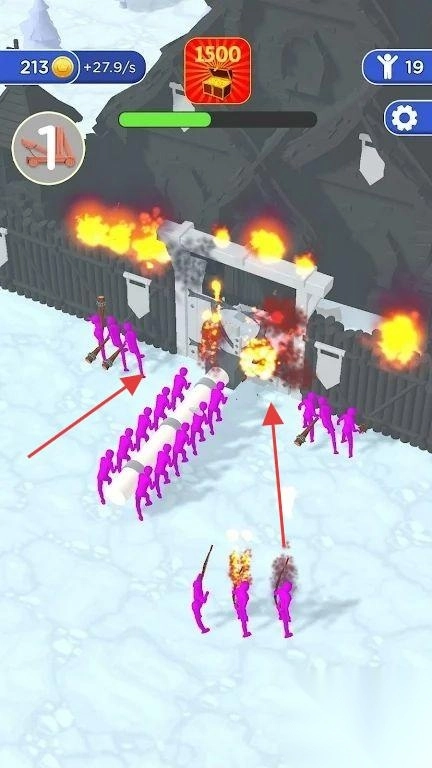 《放置攻城锤》是一款主打策略攻城的休闲竞技类游戏。在游戏里,玩家负责操控战斗团队,迎接攻城挑战。游戏内关卡丰富多样,玩家需要依据不同场景的特点,评估并规划出战阵容,巧妙搭配小兵。同时,要充分结合地形要素来制定策略,合理布局攻城武器,精准分配兵力。如此,玩家便能体验到充满策略性的攻城对决,尽情感受成功击溃敌方防线所带来的成就感。