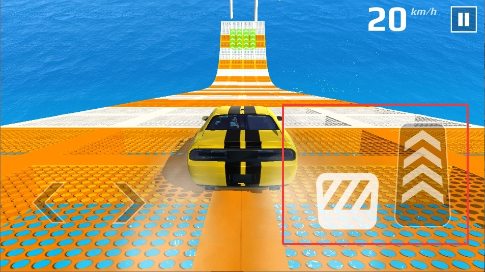 3、右侧按键控制动力系统,上滑加速冲刺,下滑减速过弯,合理配合方向键完成各种复杂赛道挑战。