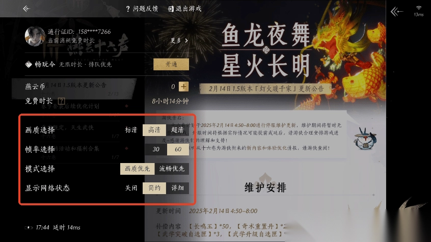 2、点击悬浮球可对云游戏进行设置,调整相关参数;