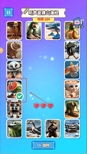 2、游戏开始后,会先播放一段角色声音,紧接着出现多个候选人物图像。玩家需要依据声音所传达的信息做出判断,然后点击正确选项,完成匹配。