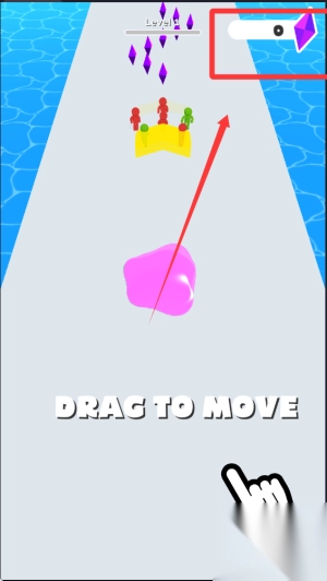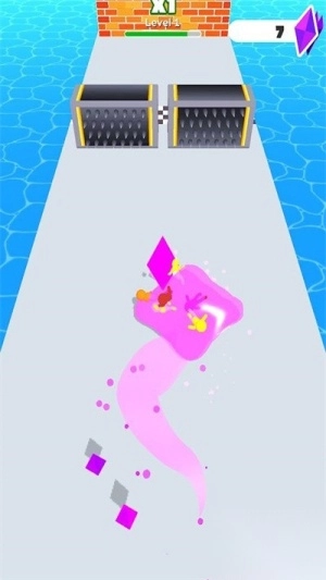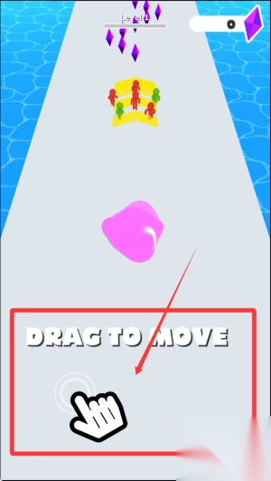 1、基础玩法是通过滑动屏幕控制史莱姆移动,在赛道上吞噬小人提升体积,同时灵活躲避各种障碍物。