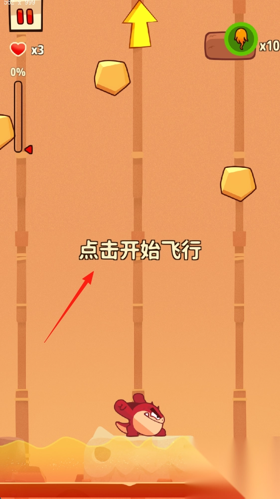 1、点击开始飞行,操控角色向上,躲避石块,保持飞行,争取通过关卡。