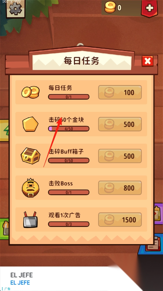 3、查看每日任务,按要求击碎金块等,完成任务,获取奖励,提升能力。