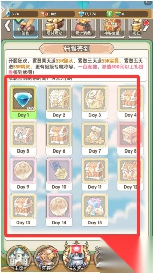 2、开服签到,每日都可以领取不错的奖励。