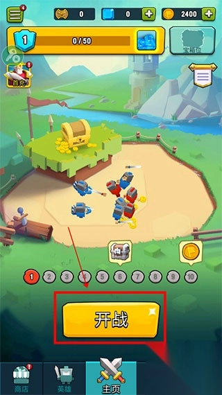 1、点击开战进行游戏,同时通过相应的关卡可以获得相对应的奖励。
