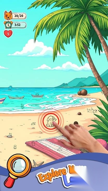 1. 在各个场景里探寻隐匿的狗狗,依靠敏锐的观察力寻觅到它们的踪迹。
