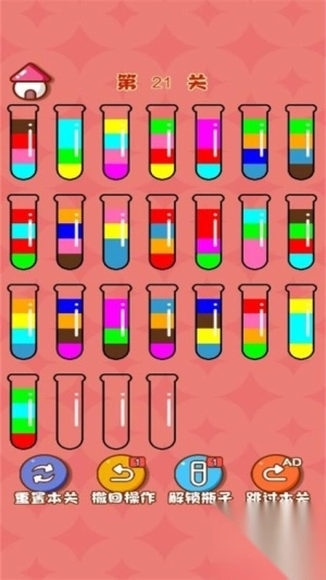2、倒水过程中,务必留意容量与颜色顺序。在每次进行操作前,先清晰规划好下一步行动。尽可能削减不必要的步骤,以此提升通关效率,降低重新开始的几率。