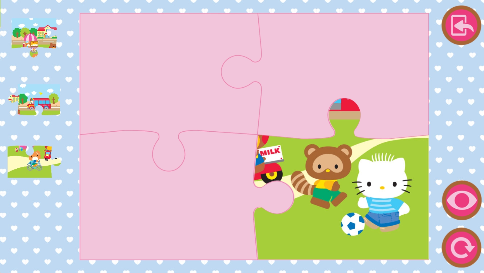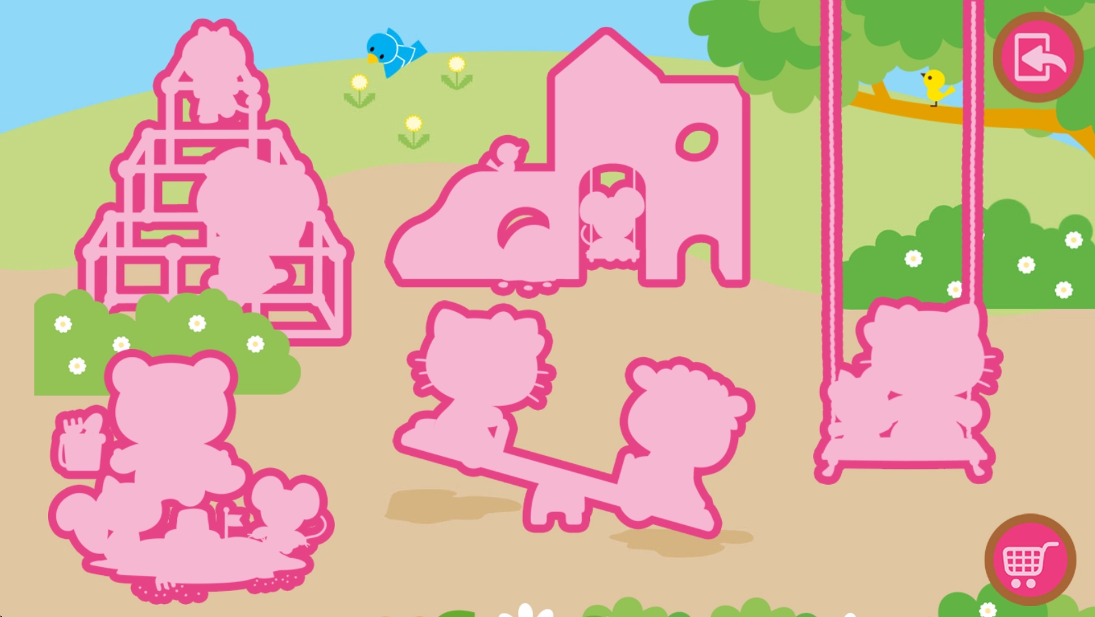 3、和凯蒂猫一起在小镇中旅行,在面包店、剧院、公共汽车、图书馆等场景中去发现更多有意思的内容。