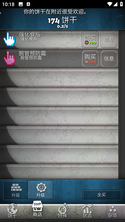 1、游戏的首要任务是用尽各种办法升级,包括点击饼干图案,升级建筑物,升级技术,以及享受加成。