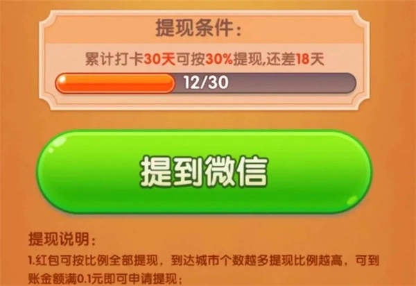 2、888并非凑满888就能直接提现,后续还得完成到达32个城市且累计打卡30天的任务。要知道,达到32个城市这个游戏肯定是设置了门槛的。