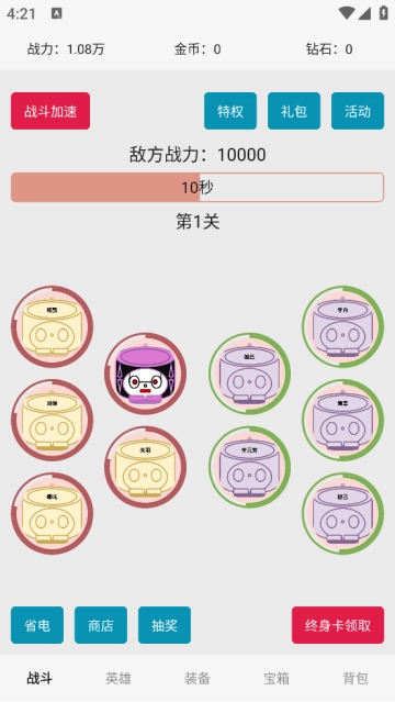 1.抽卡获取英雄,搭配阵容,打造无敌阵容。