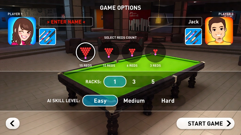 这是一款超有趣的台球游戏,你既能选择与电脑对战,也能和好友联机作战,尽情享受台球竞技的乐趣。游戏搭载了强大的物理引擎,玩家能够从多个角度击球入袋,获得好玩又逼真的全新台球游戏体验。
