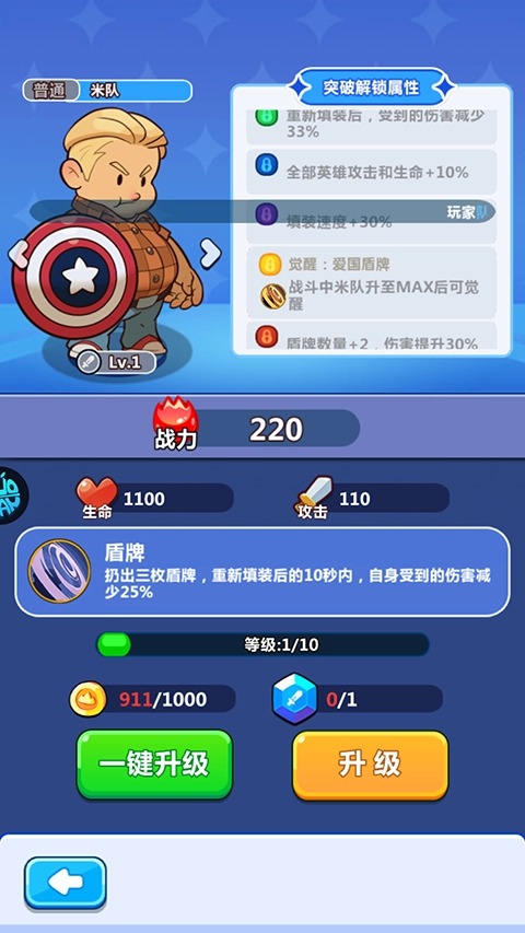 2、米队 - 输出方式为扔出三枚盾牌,盾牌重新填装后的10秒内,米队自身受到的伤害会减少25% 。