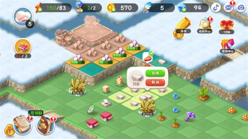 1、游戏采用了三消的模拟经营方式,通过将界面中的相同元素放在一起即可进行合成;